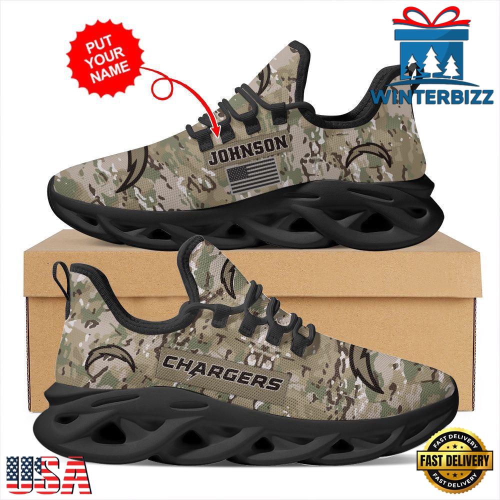 NFL Custom Name Los Angeles Chargers US Army Military Veteran Camouflage Max Soul Shoes Sneakers