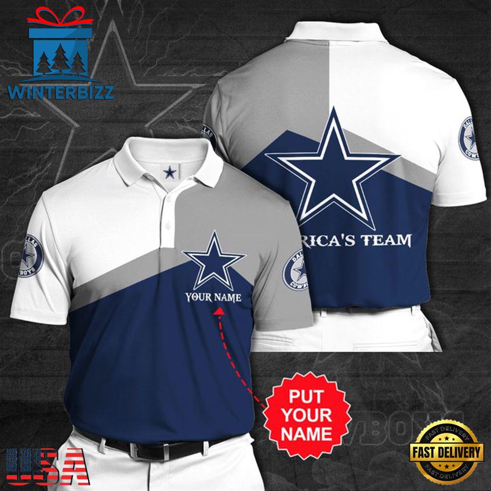 Photos Of NFL Dallas Cowboys Custom Name White Grey Logo In Heart Polo Shirt , Golf Polo Shirts, Golf Gifts