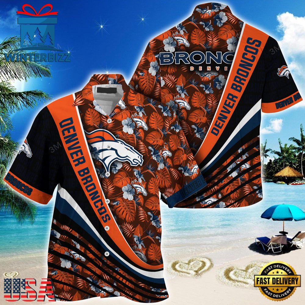 NFL Denver Broncos Hawaii Shirt With Tropical Flower Pattern , Mens Hawaiian Shirts