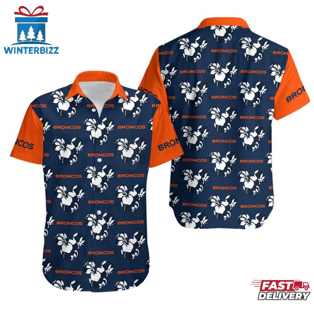 NFL Denver Broncos Mickey And Flowers Hawaiian Shirt