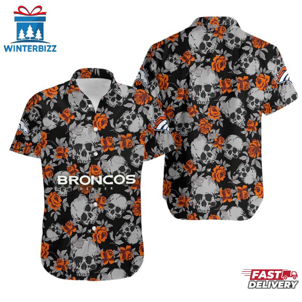 NFL Denver Broncos Roses And Skull Pattern Hawaiian Shirt