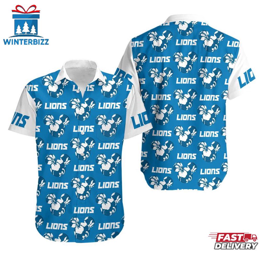 NFL Detroit Lions Mickey And Flowers Hawaiian Shirt