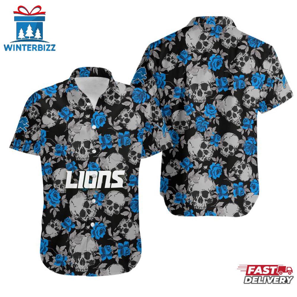 NFL Detroit Lions Roses And Skull Pattern Hawaiian Shirt