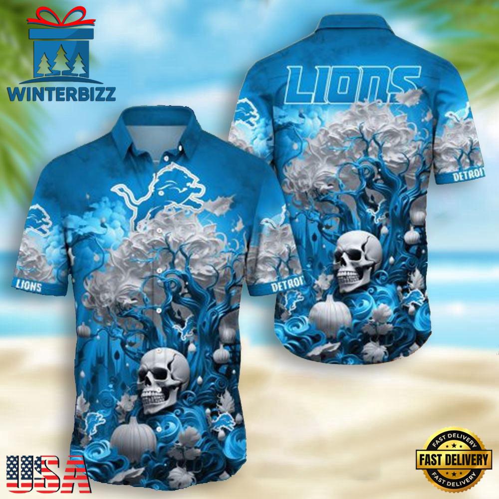 NFL Detroit Lions Skull Pumpkin Halloween Hawaiian Shirt , Hawaiian Shirt For Mens