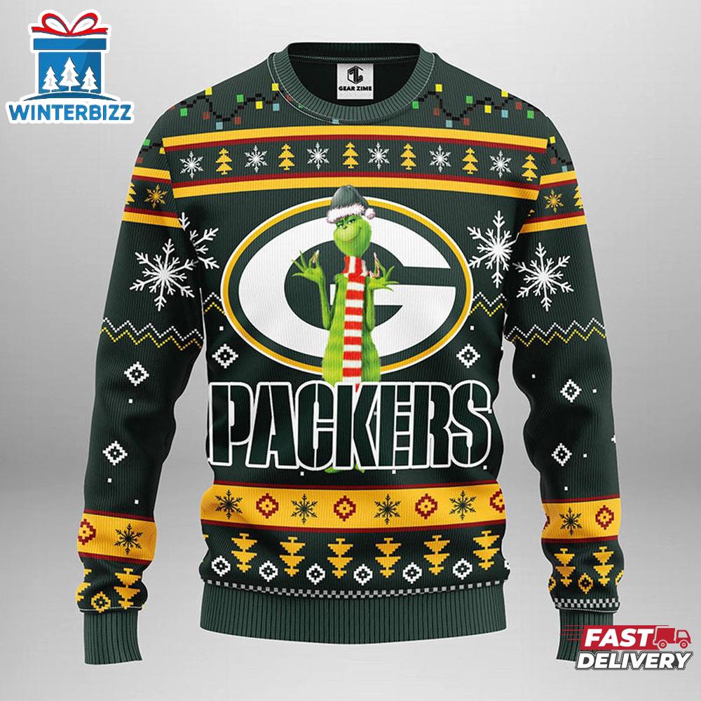Product details: NFL Green Bay Packers Funny Grinch Football Christmas Sweater