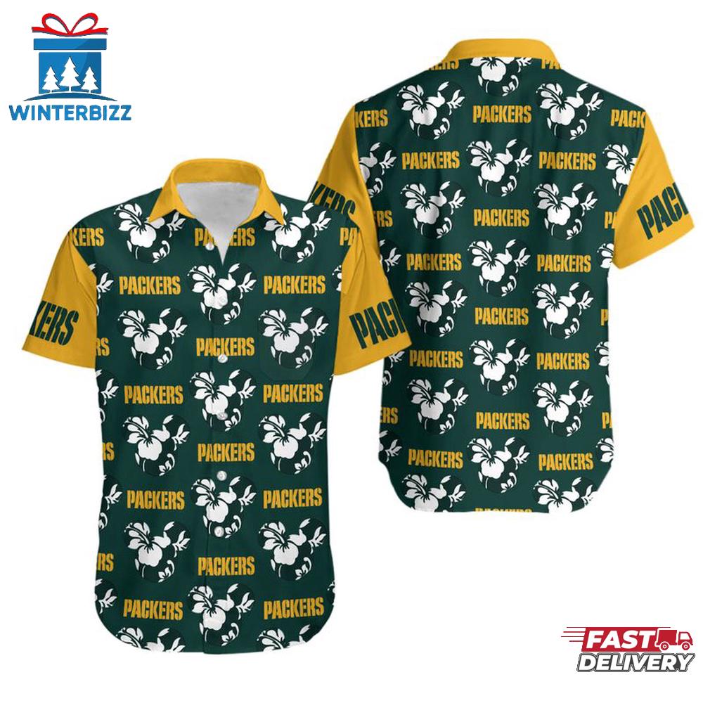 NFL Green Bay Packers Mickey And Flowers Hawaiian Shirt