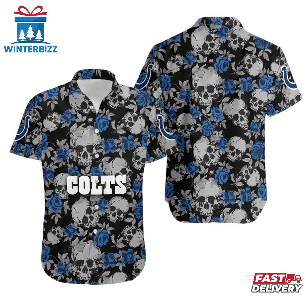 NFL Indianapolis Colts Roses And Skull Pattern Hawaiian Shirt