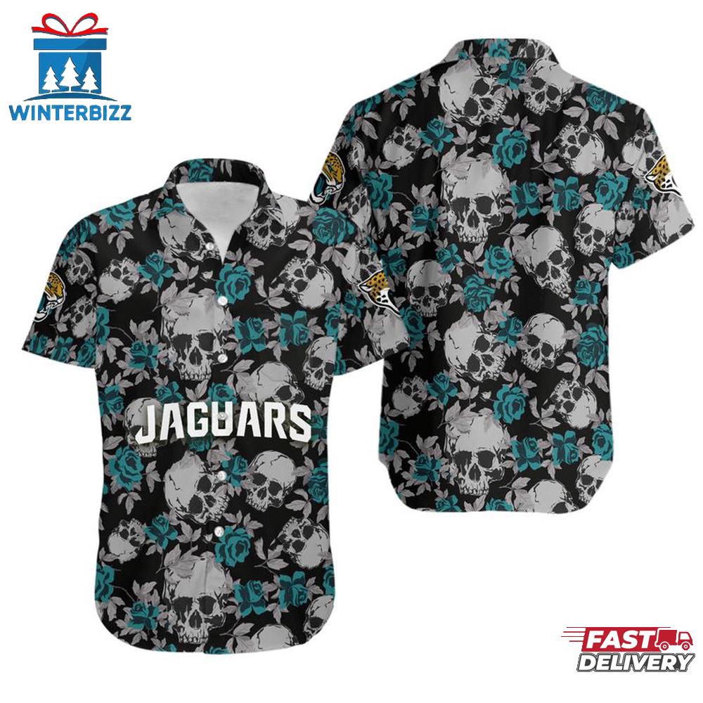 NFL Jacksonville Jaguars Roses And Skull Pattern Hawaiian Shirt