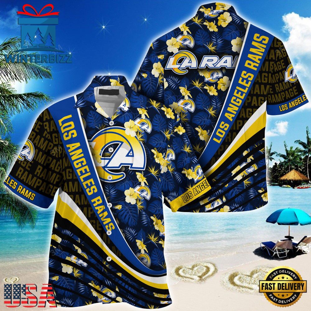 NFL Los Angeles Rams Hawaii Shirt With Tropical Flower Pattern , Mens Hawaiian Shirts