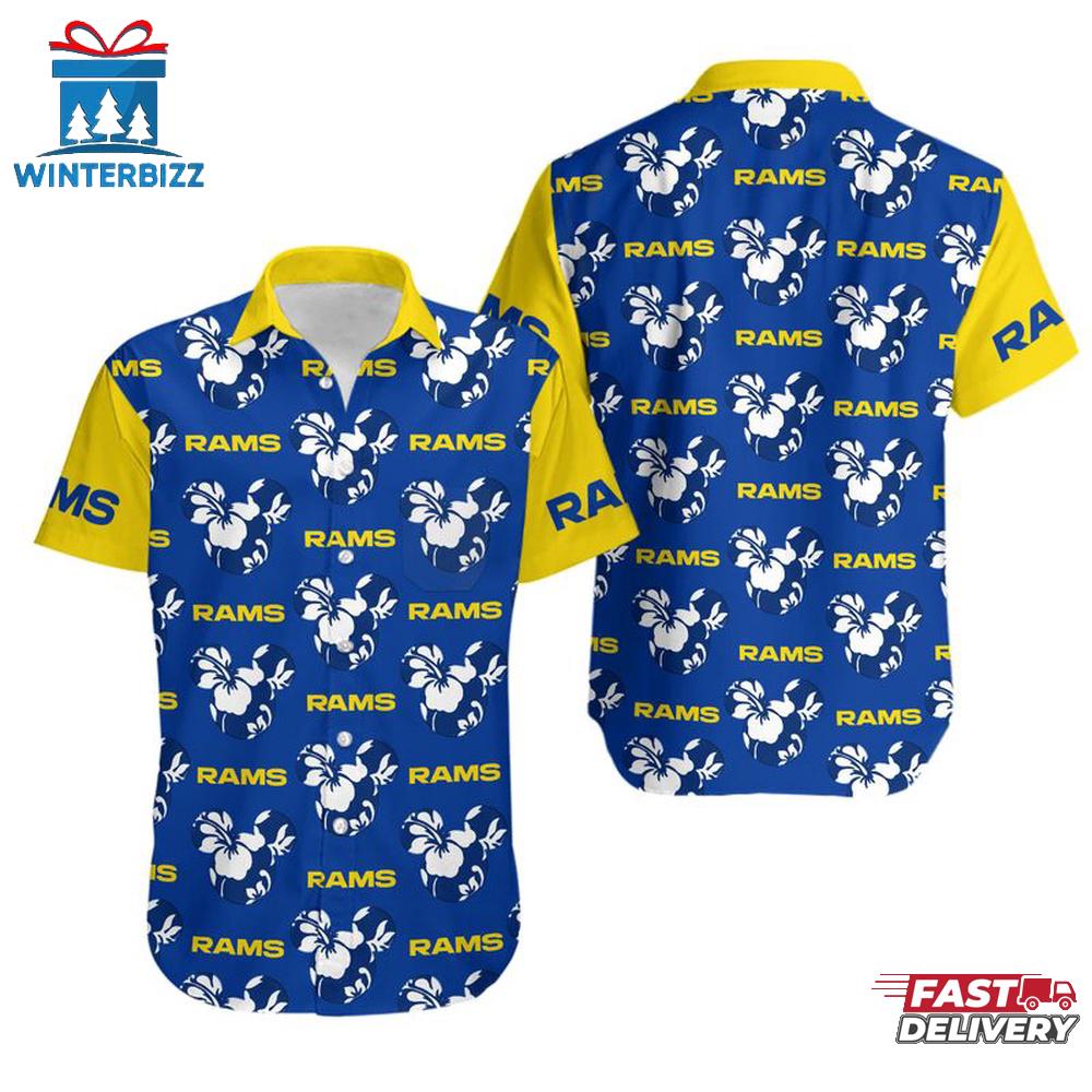 NFL Los Angeles Rams Mickey And Flowers Hawaiian Shirt