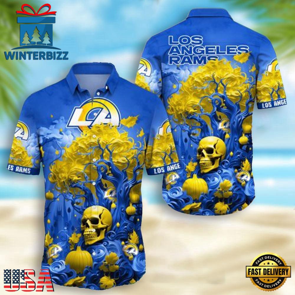 NFL Los Angeles Rams Skull Pumpkin Halloween Hawaiian Shirt , Hawaiian Shirt For Mens