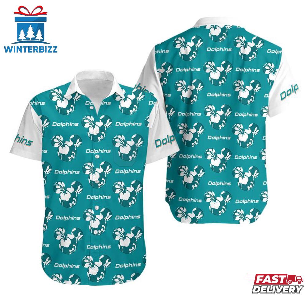 Photos Of NFL Miami Dolphins Mickey And Flowers Hawaiian Shirt