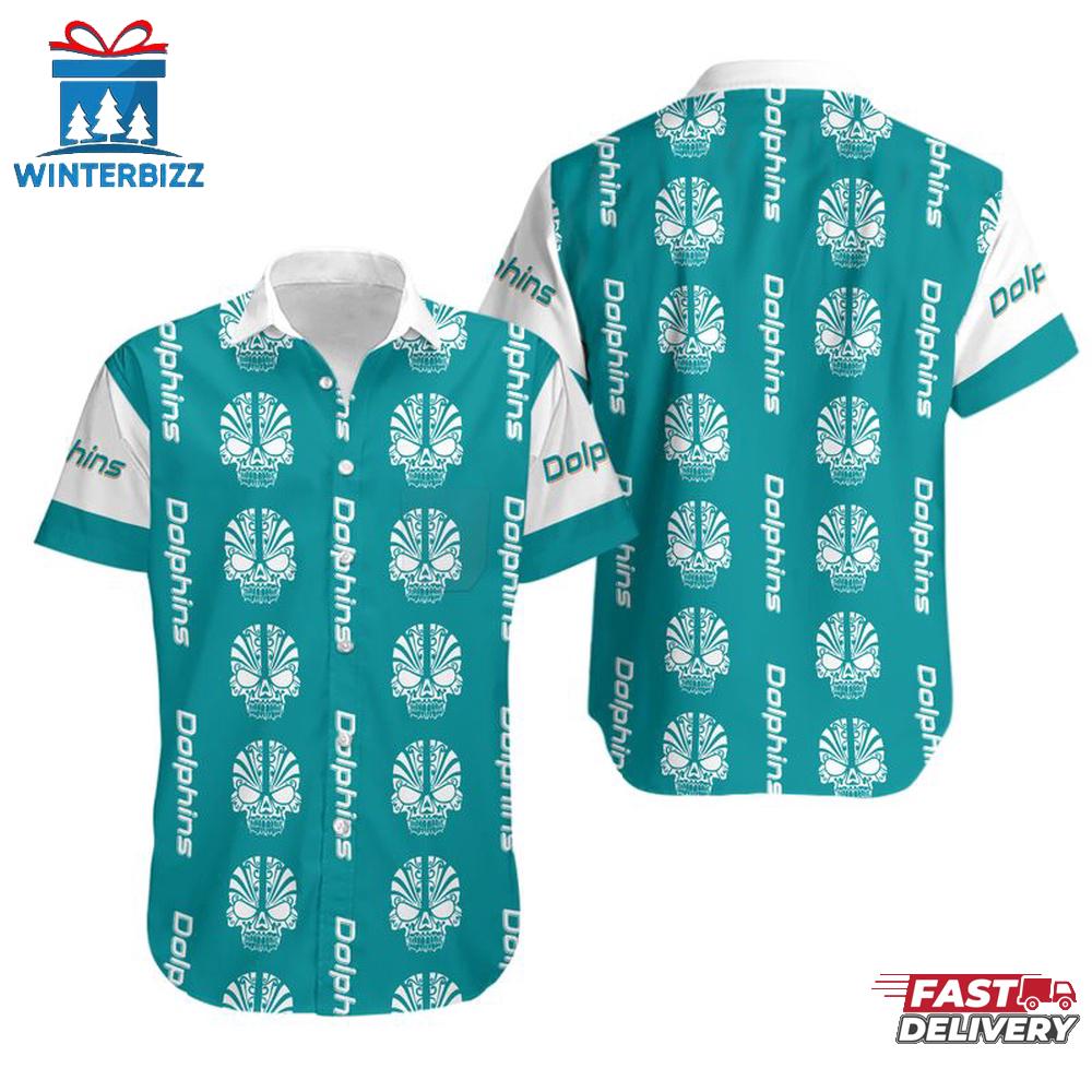 Photos Of NFL Miami Dolphins Mystery Skull Pattern Hawaiian Shirt