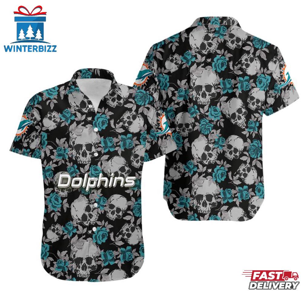 NFL Miami Dolphins Roses And Skull Pattern Hawaiian Shirt