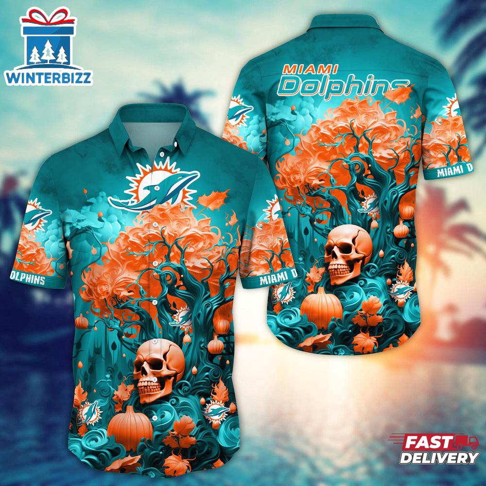Photos Of NFL Miami Dolphins Skull Tree Hawaiian Shirt