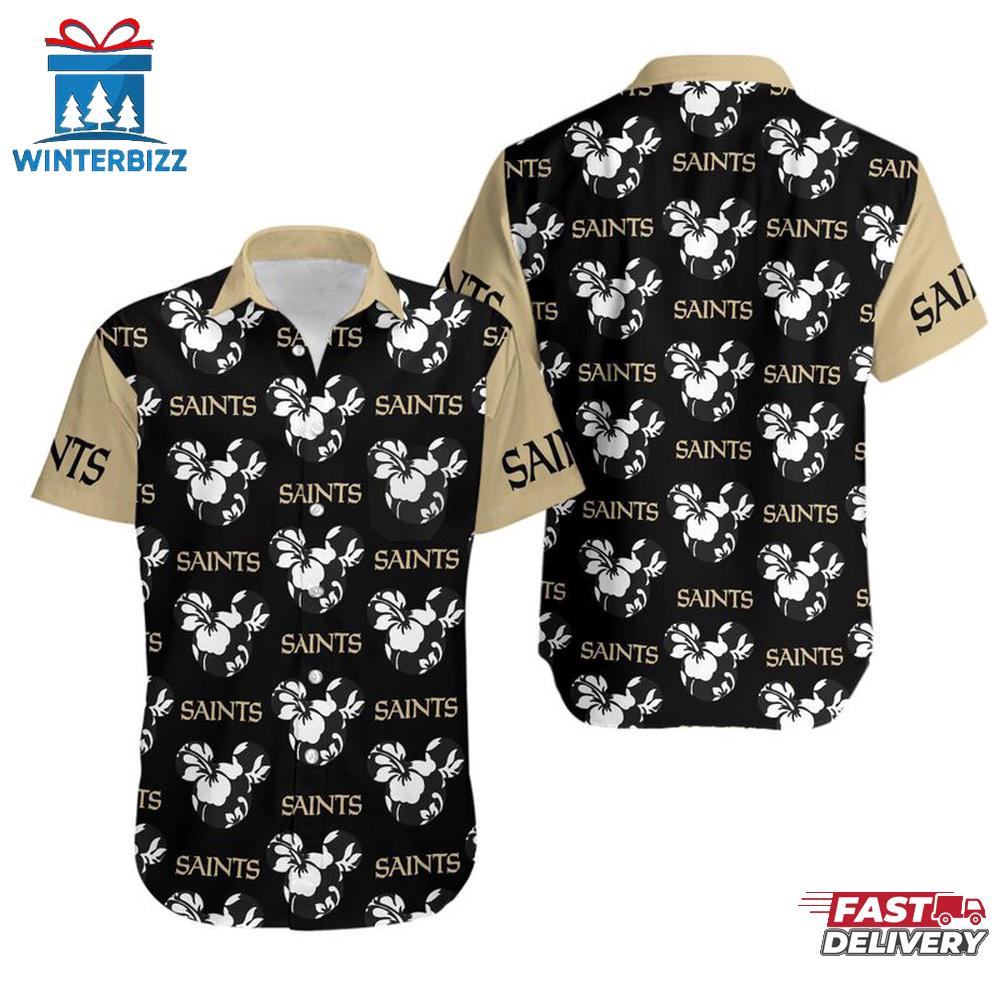 NFL New Orleans Saints Mickey And Flowers Hawaiian Shirt