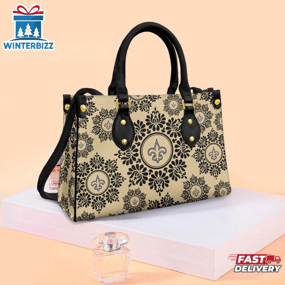 Product details: NFL New Orleans Saints Ornamental Round Pattern Leather Handbag