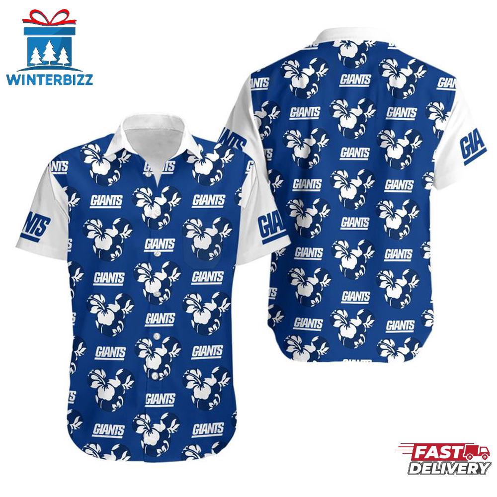 NFL New York Giants Mickey And Flowers Hawaiian Shirt