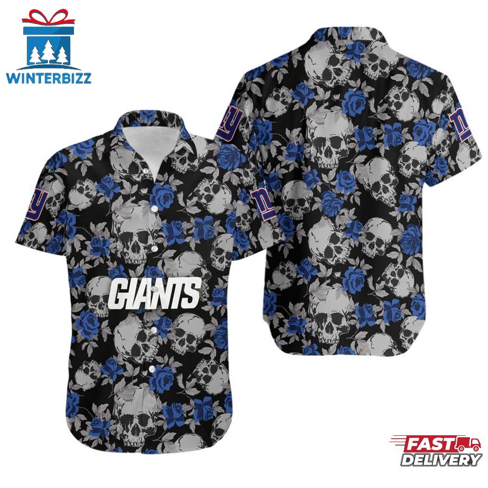 NFL New York Giants Roses And Skull Pattern Hawaiian Shirt
