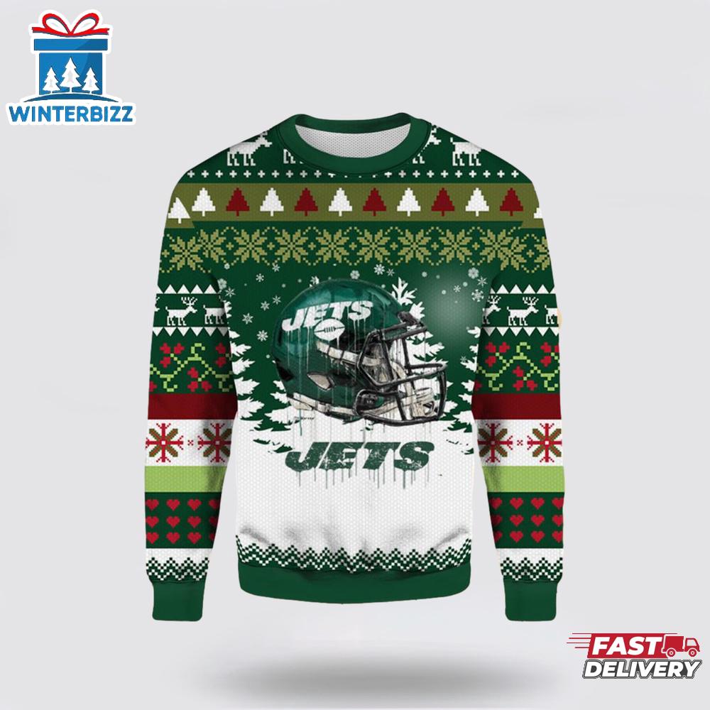 NFL New York Jets Helmet Ugly Christmas Sweater is a Christmas sweater with funny, humorous, and quirky patterns. It will be a meaningful gift for you to show your love and care for your loved ones.
