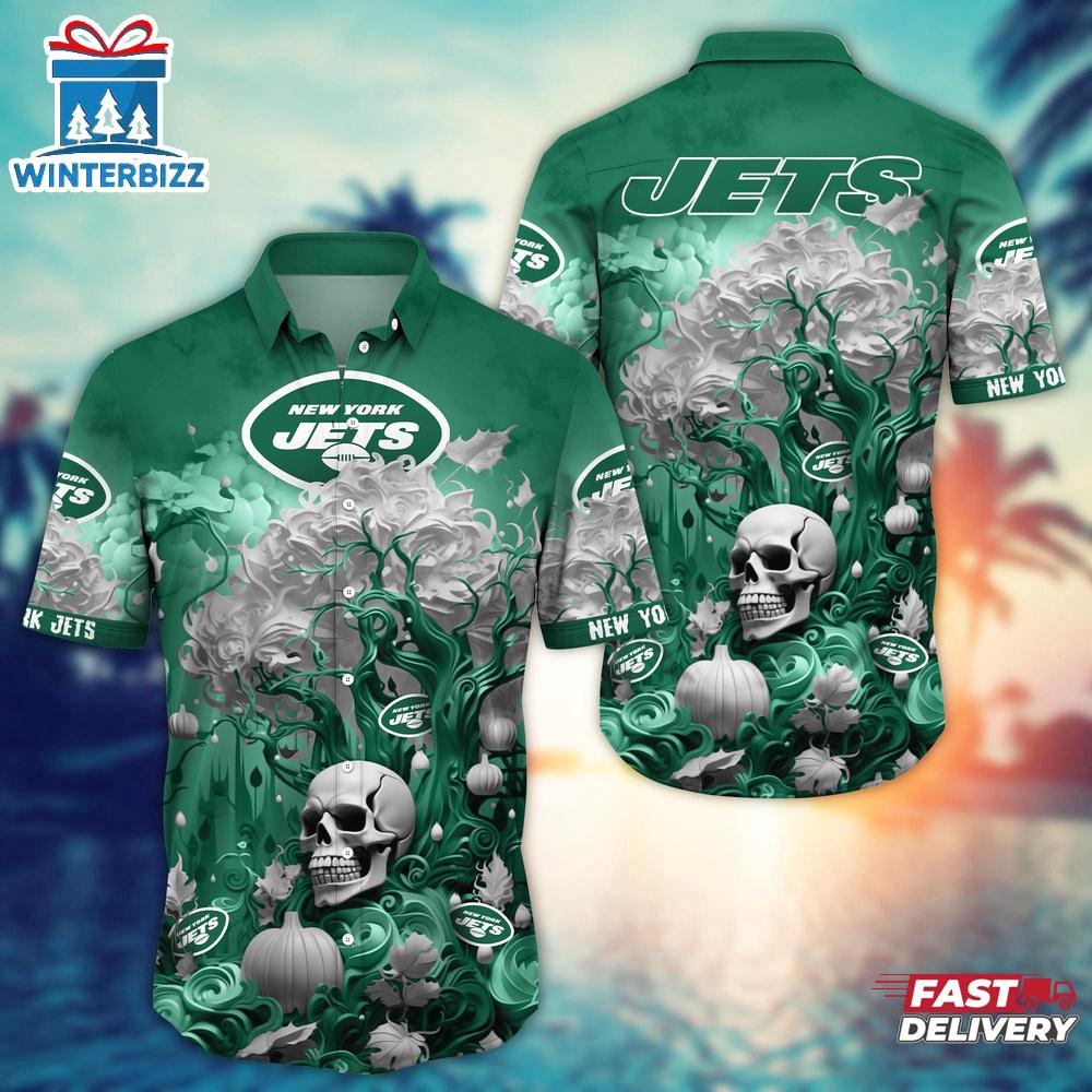 Photos Of NFL New York Jets Skull Tree Hawaiian Shirt
