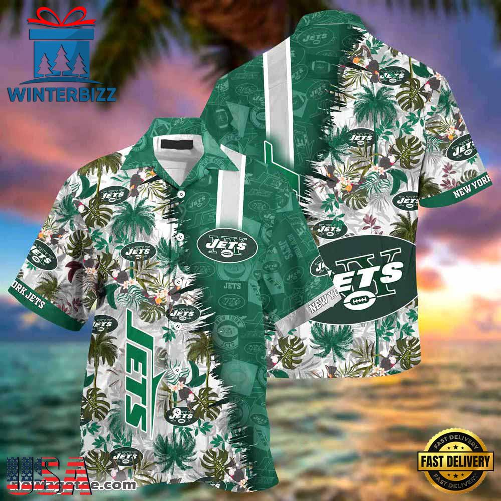 NFL New York Jets Summer Beach Hawaiian Button Up Shirt , Hawaiian Shirt For Mens