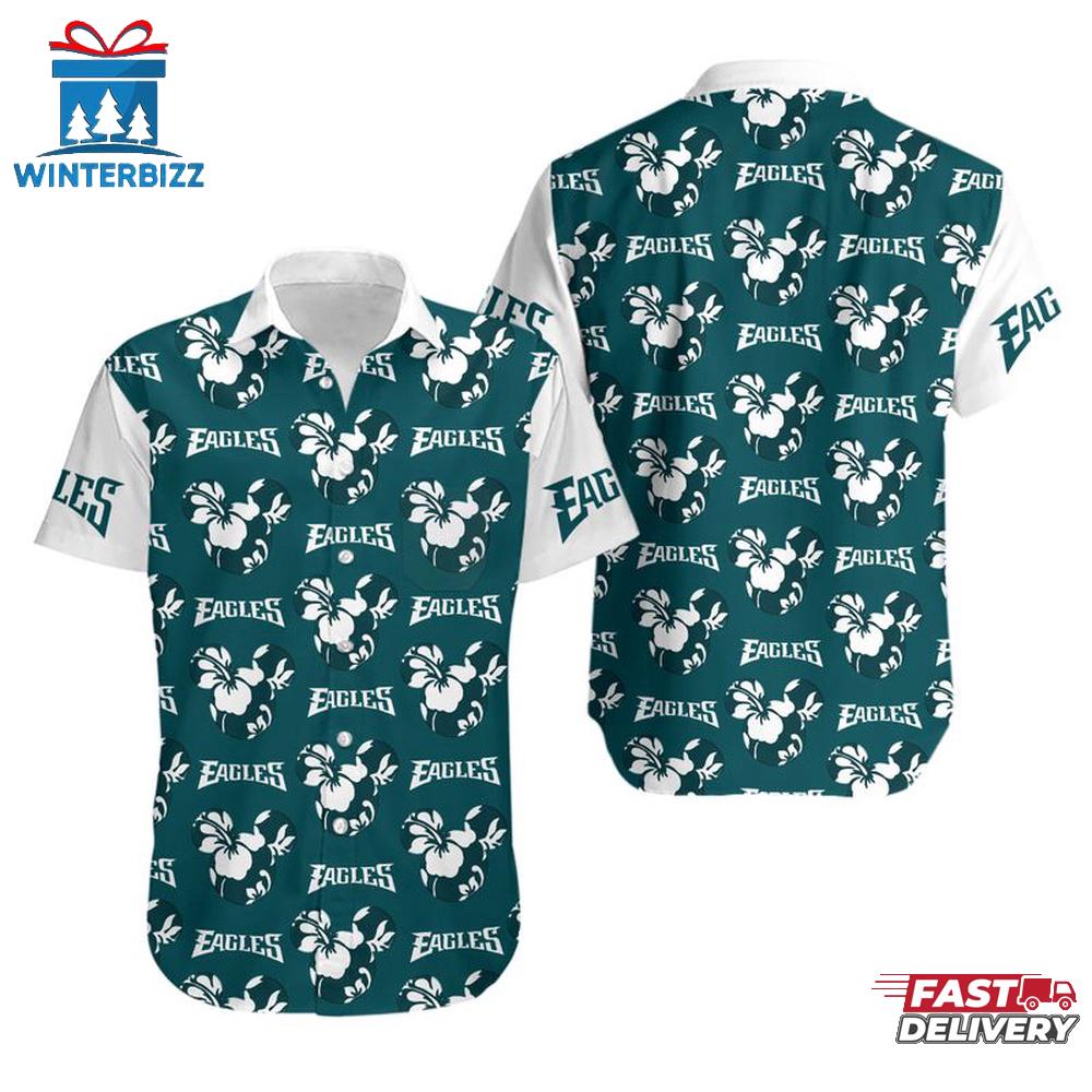 NFL Philadelphia Eagles Mickey And Flowers Hawaiian Shirt