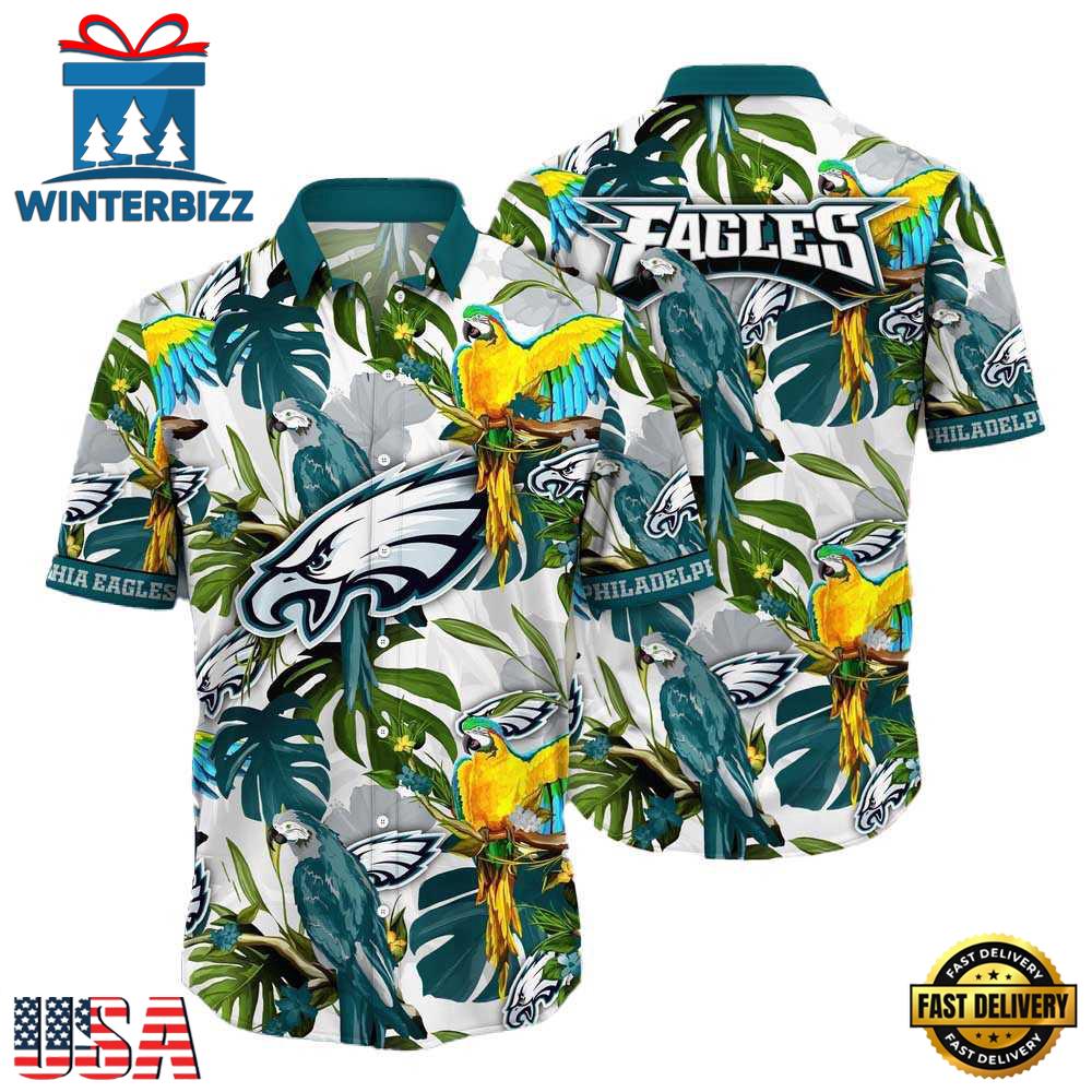 NFL Philadelphia Eagles Parrots Tropical Flower Hawaiian Shirt , Hawaiian Shirt For Mens