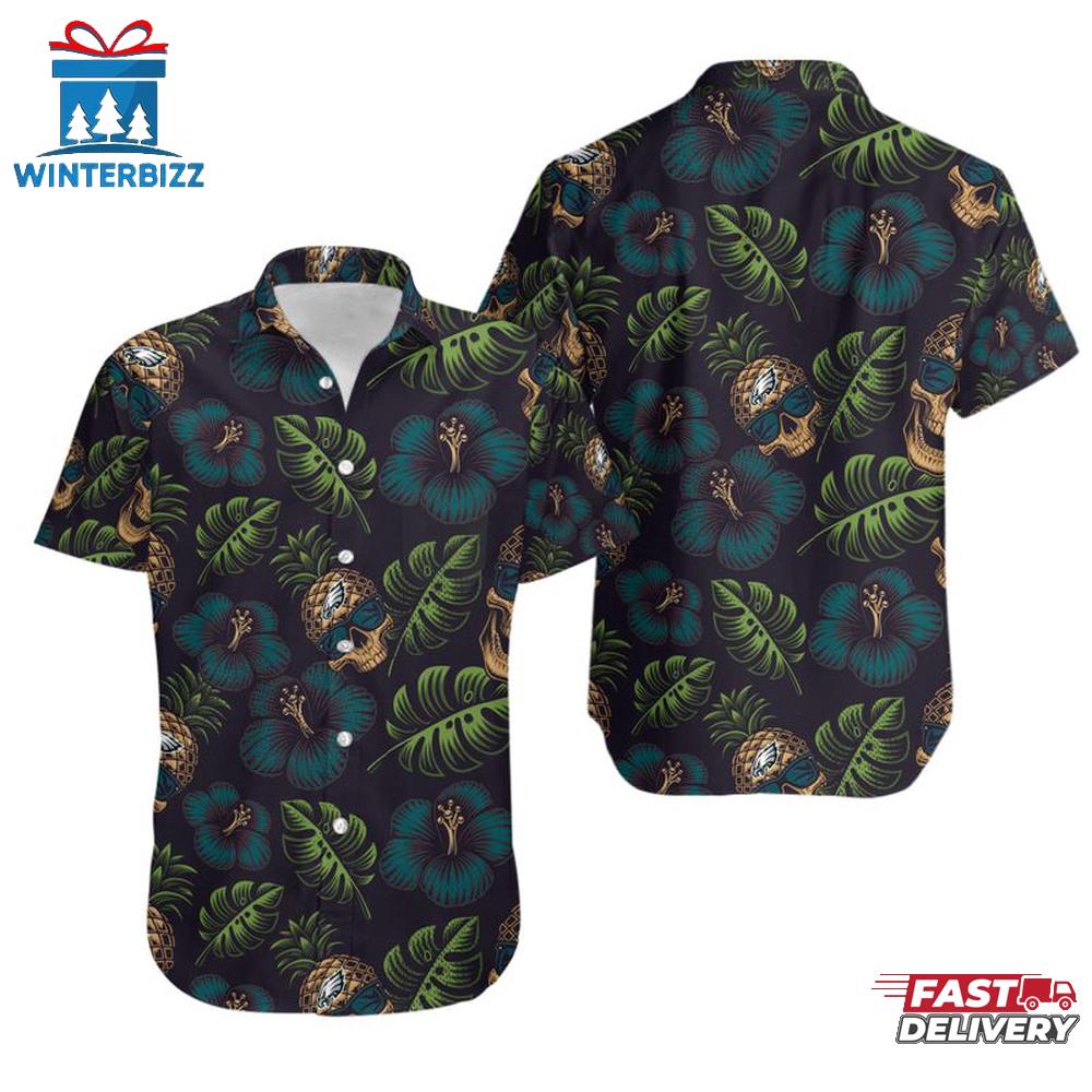 Photos Of NFL Philadelphia Eagles Pinapple Skull Pattern Hawaiian Shirt