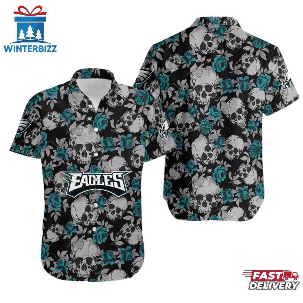 NFL Philadelphia Eagles Roses And Skull Pattern Hawaiian Shirt