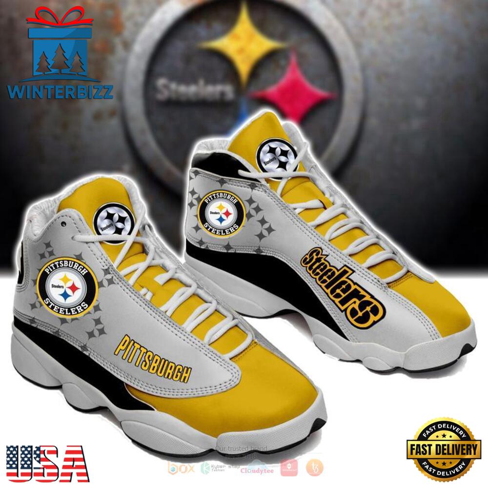 NFL Pittsburgh Steelers Yellow Grey Air Jordan 13 Sneakers Shoes For Womens