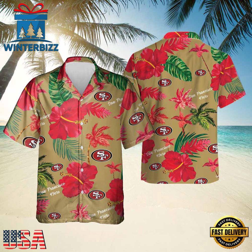 Photos Of NFL San Francisco 49ers Color Hibiscus Button Up Hawaiian Shirt , Hawaiian Shirt For Mens