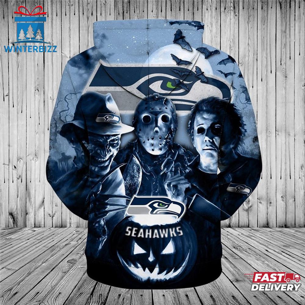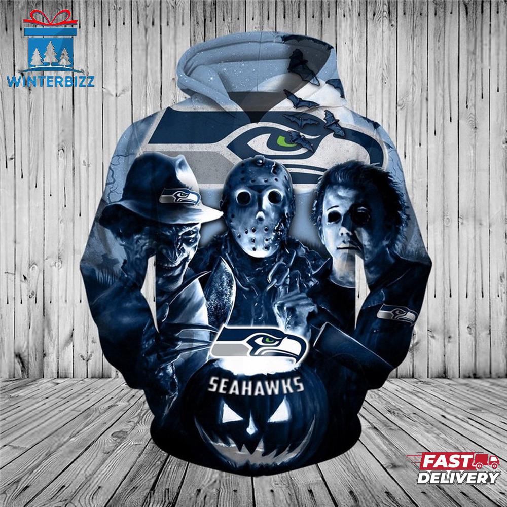 NFL Seattle Seahawks Horror Night Halloween All Over Print Hoodie Shirt The 3D Shirt is a fashion statement that goes beyond the ordinary. Using advanced printing technology, it brings designs to life with depth and vividness. Crafted from high-quality materials, it offers comfort and durability. The three-dimensional graphics create a captivating effect that’s perfect for casual wear or making a bold statement. Whether you’re expressing your fandom or showcasing your unique taste, the 3D Shirt is a wearable work of art that sets you apart from the crowd.