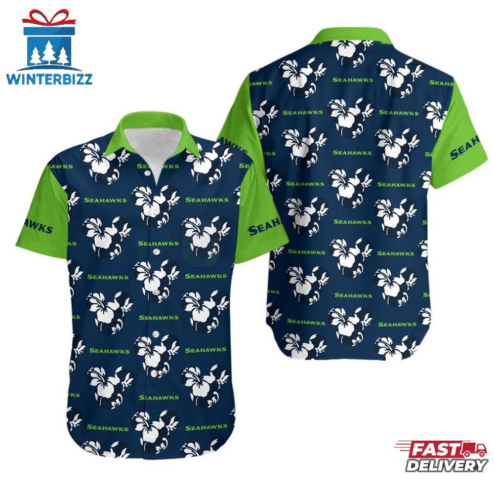 NFL Seattle Seahawks Mickey And Flowers Hawaiian Shirt