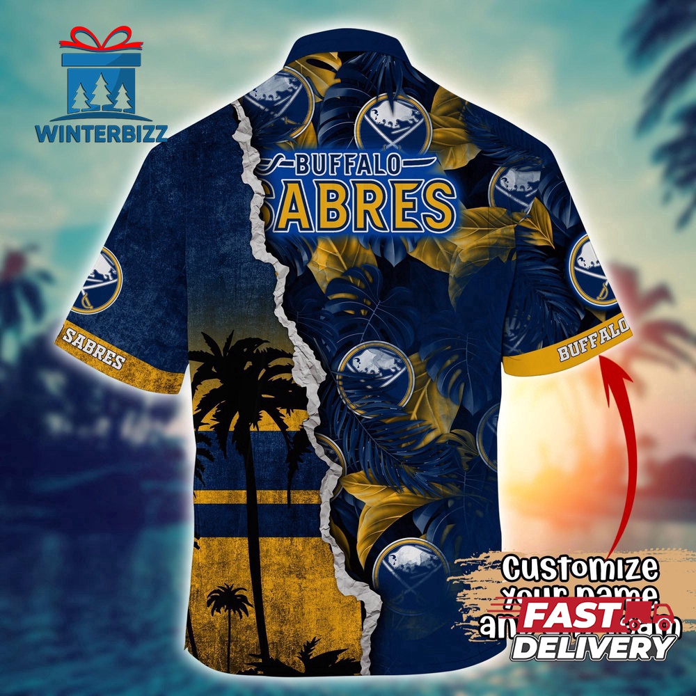 NHL Buffalo Sabres Palm Tree Hawaii Shirt Custom Summer Football Shirts The Hawaiian Shirt epitomizes the essence of laid-back, tropical style. Crafted from light, breathable fabrics, it offers a comfortable and relaxed fit, perfect for sunny day outings. With vibrant, exotic patterns, it embodies the spirit of the Hawaiian islands, radiating an air of adventure and discovery. The button-up design and collared neckline strike the ideal balance between casual and semi-formal attire. Whether you’re strolling along the beach or attending a summer event, the Hawaiian Shirt exudes a breezy charm that captures the essence of relaxation. Embrace the aloha spirit and infuse your wardrobe with a touch of paradise through this timeless and iconic piece.