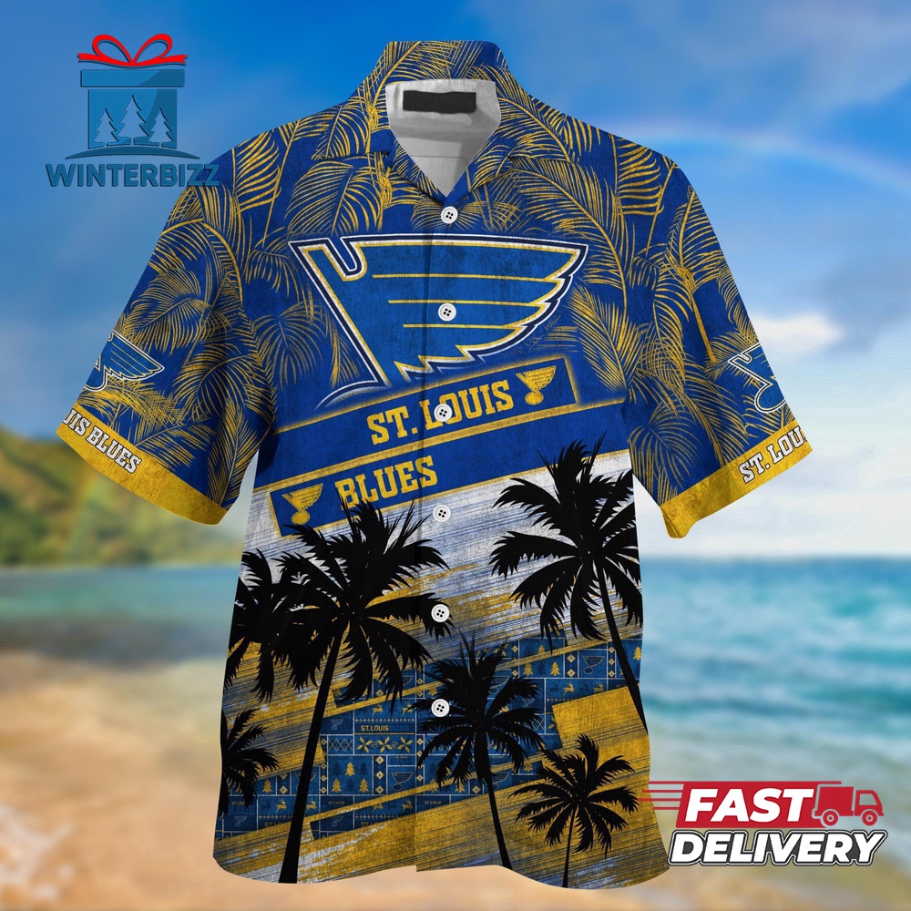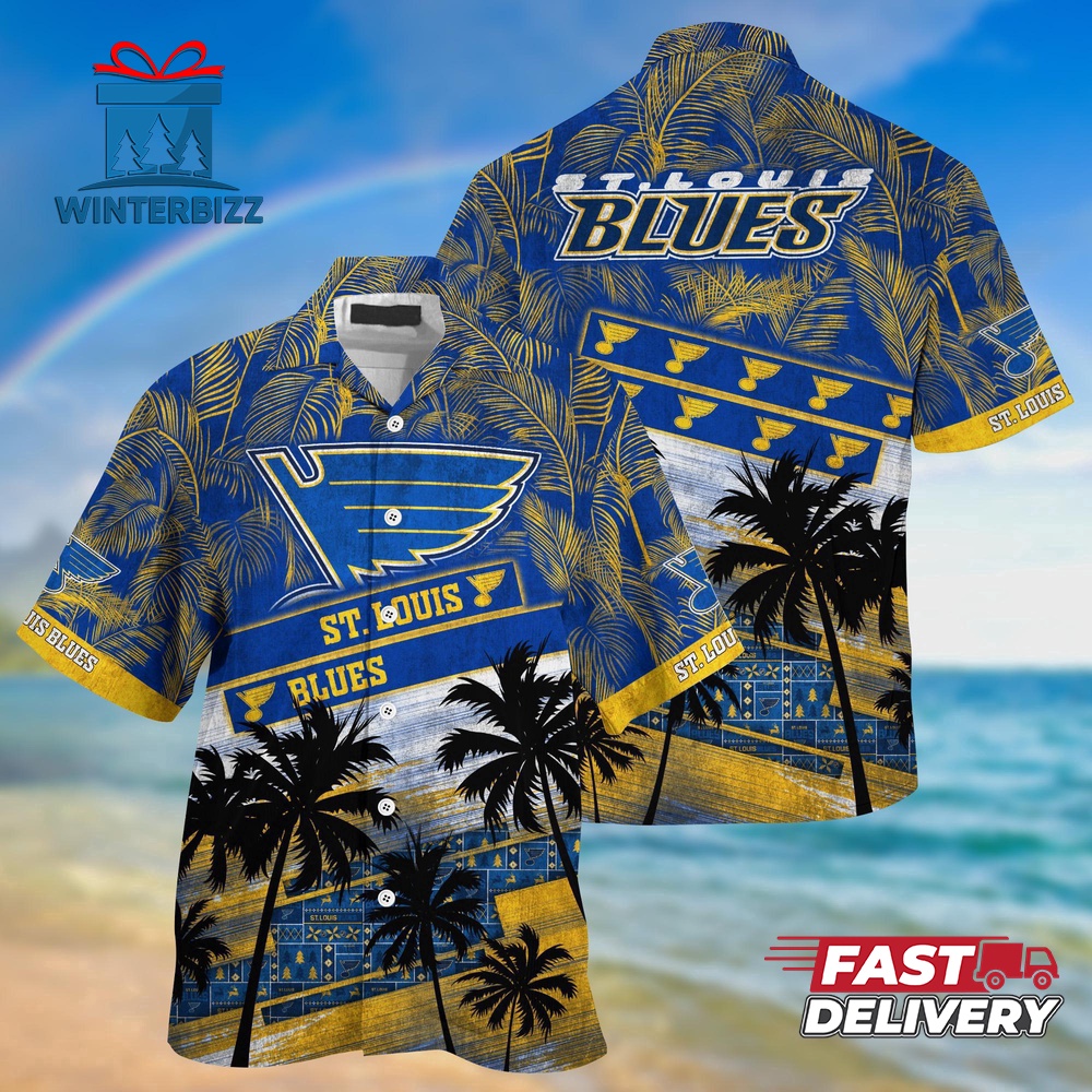 NHL St. Louis Blues Palm Tree Pattern Hawaii Shirt Unisex Sport Hawaii Shirt The Hawaiian Shirt epitomizes the essence of laid-back, tropical style. Crafted from light, breathable fabrics, it offers a comfortable and relaxed fit, perfect for sunny day outings. With vibrant, exotic patterns, it embodies the spirit of the Hawaiian islands, radiating an air of adventure and discovery. The button-up design and collared neckline strike the ideal balance between casual and semi-formal attire. Whether you’re strolling along the beach or attending a summer event, the Hawaiian Shirt exudes a breezy charm that captures the essence of relaxation. Embrace the aloha spirit and infuse your wardrobe with a touch of paradise through this timeless and iconic piece.