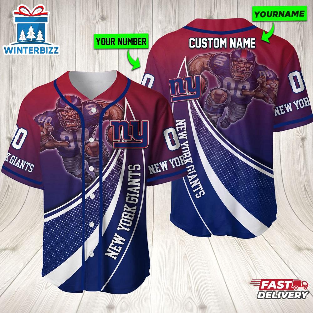 Personalized Name And Number New York Giants Mascot Football NFL Team Baseball Jersey The ultimate fusion for devoted fans! These unique baseball jersey shirt are a must-have for enthusiasts. With premium polyester material, they provide unrivaled comfort and support. Sporting your favorite team’s logo and colors, baseball jersey shirt let you showcase team spirit with every step. Perfect as a gift or for yourself, embrace your love for the and experience unmatched style and comfort with baseball jersey shirt. Order now and elevate your fan status!
