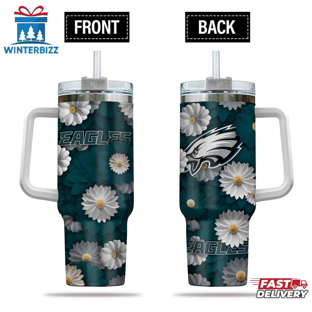 Product details: Philadelphia Eagles Flowers Pattern NFL Tumbler 40Oz