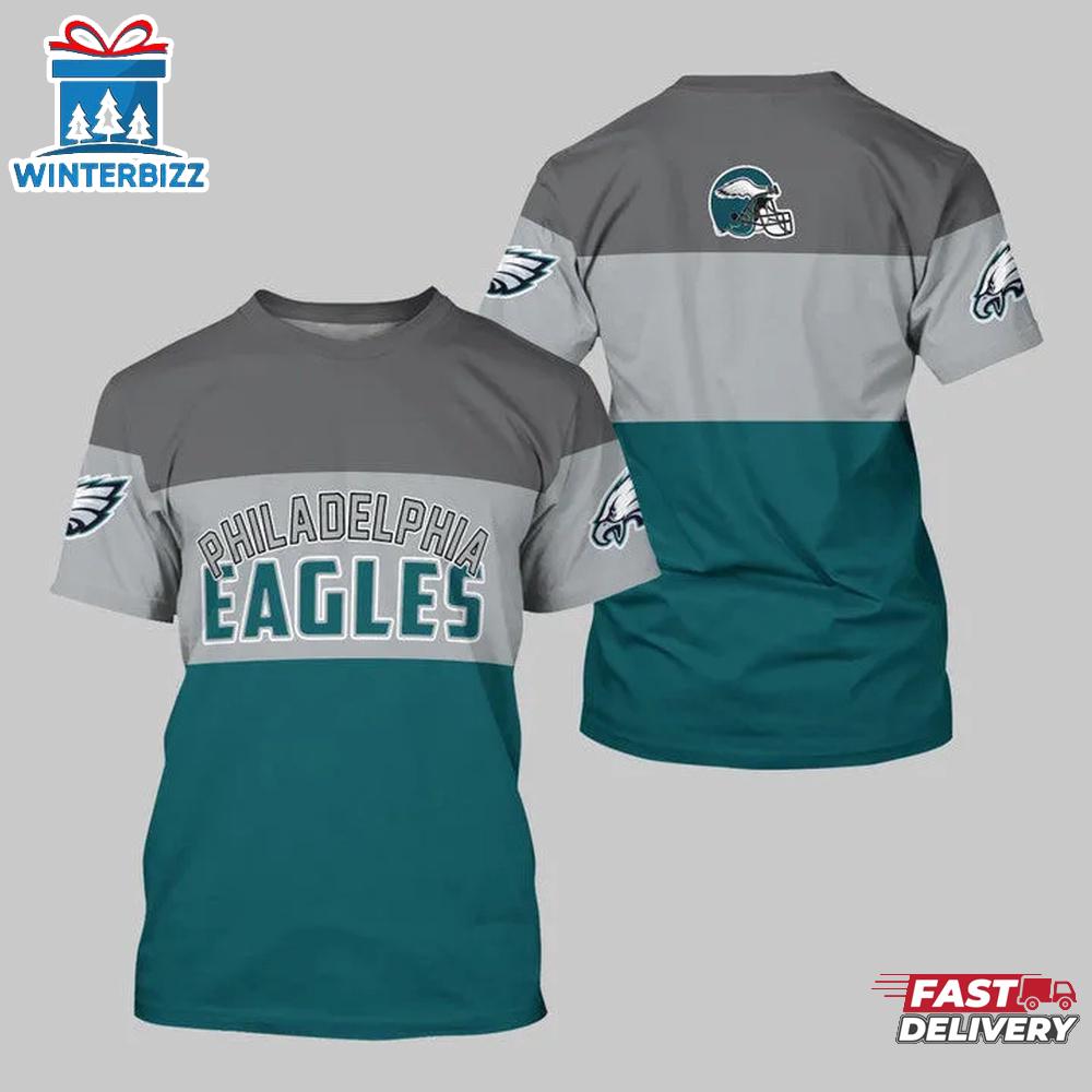 - Custom Name And Number NFL Philadelphia Eagles Team Autism Awareness 3D T-Shirt