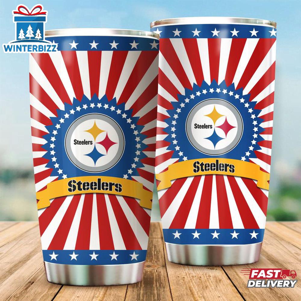 Pittsburgh Steelers USA Flag Pattern Independence Day Tumbler