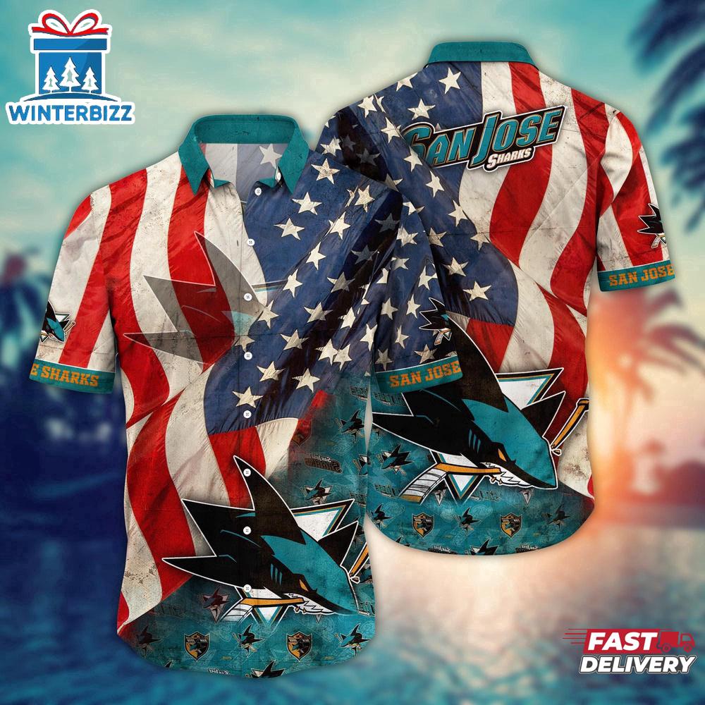 Photos Of San Jose Sharks American Pride Summer Hawaiian Shirt