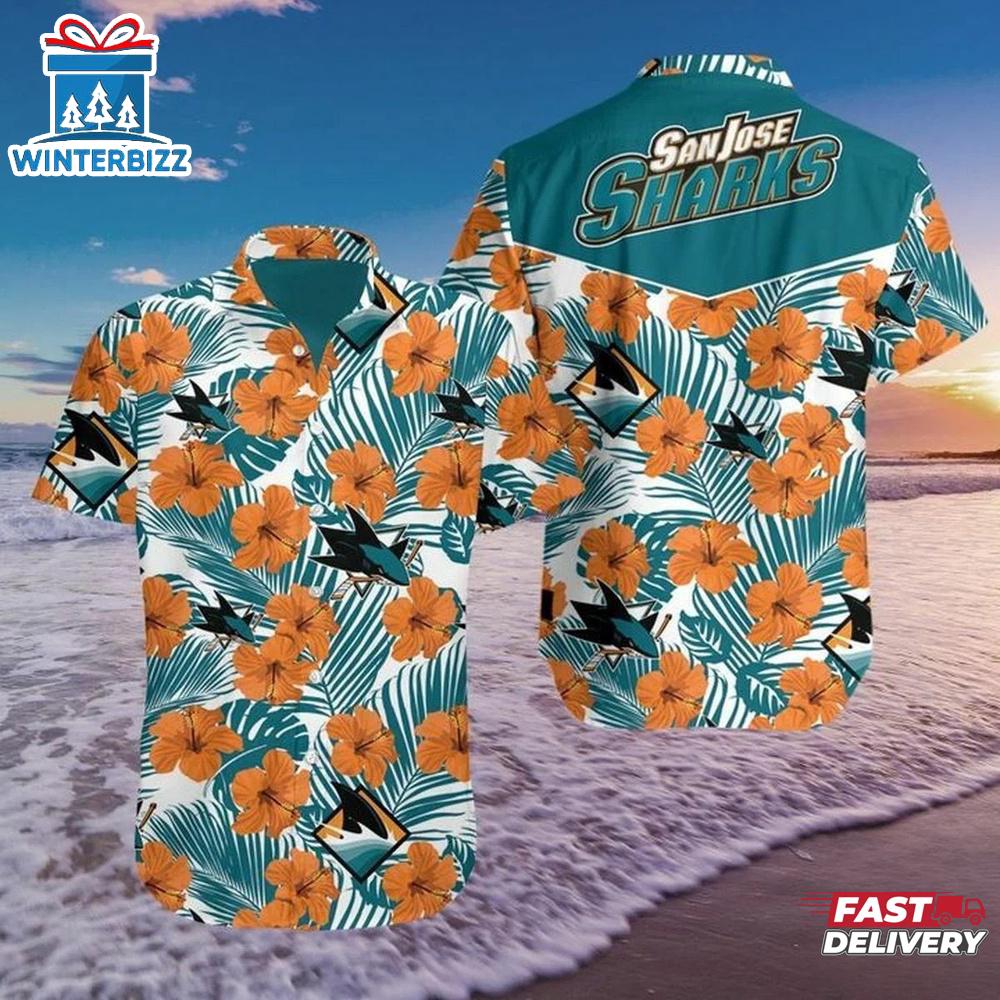 Photos Of San Jose Sharks Hibiscus Breeze Summer Hawaiian Shirt