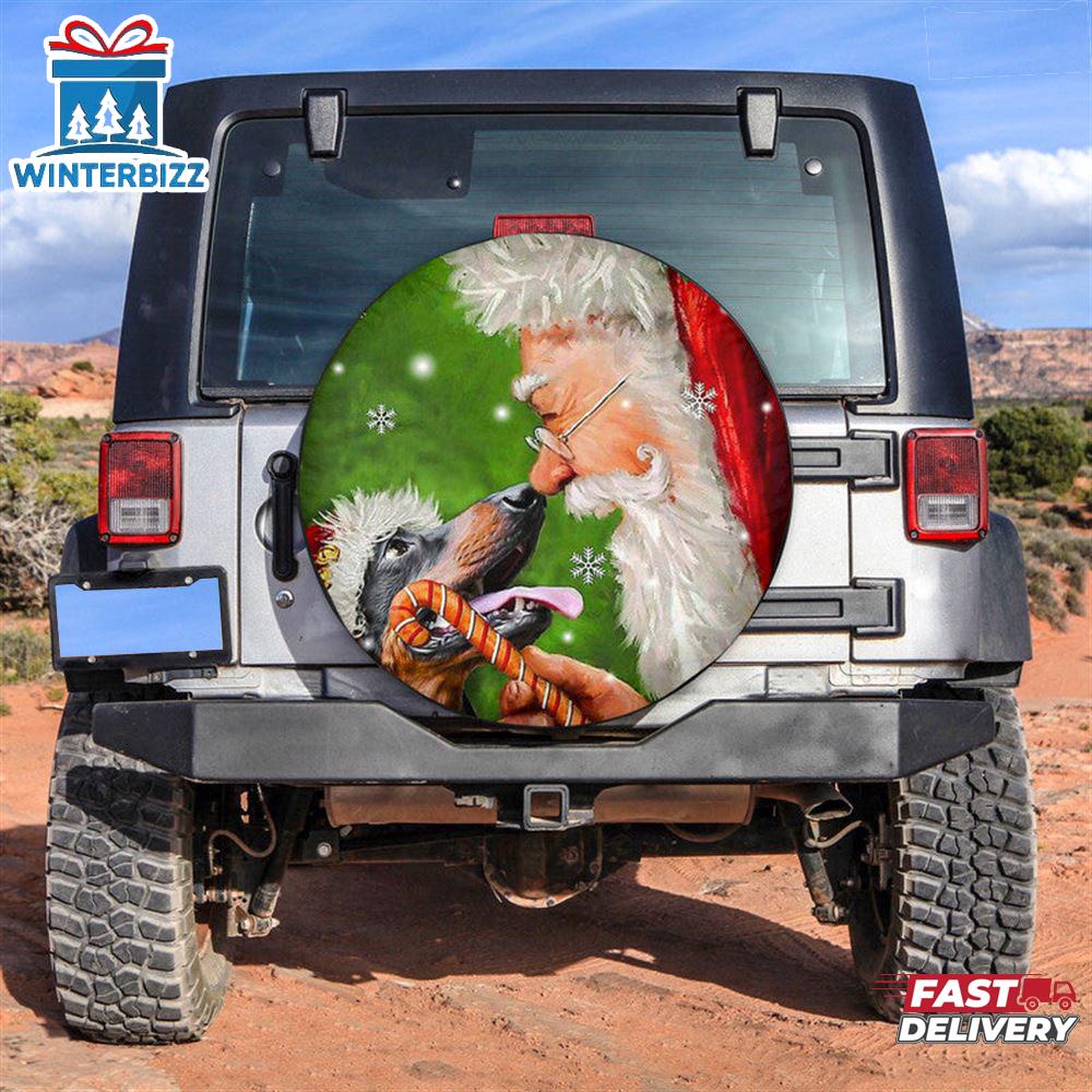 Photos Of Santa Claus And Dog Lover Car Spare Tire Cover Decoration