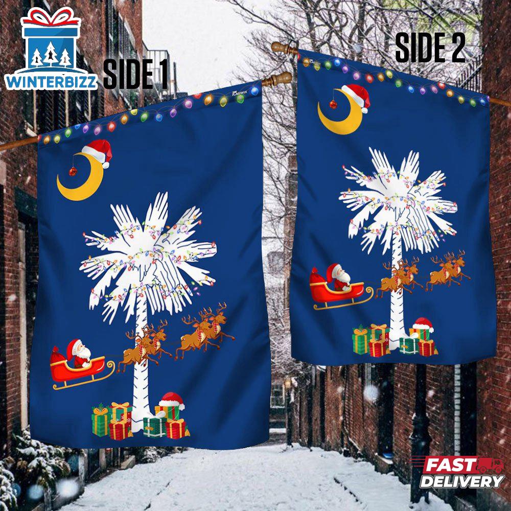 Product details: South Carolina Christmas Santa Christmas Palmetto Tree Flag Merry Christmas House Garden Flag