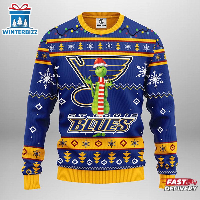 Product details: St. Louis Blues Funny Grinch Ugly Christmas Sweater Gift For Fans