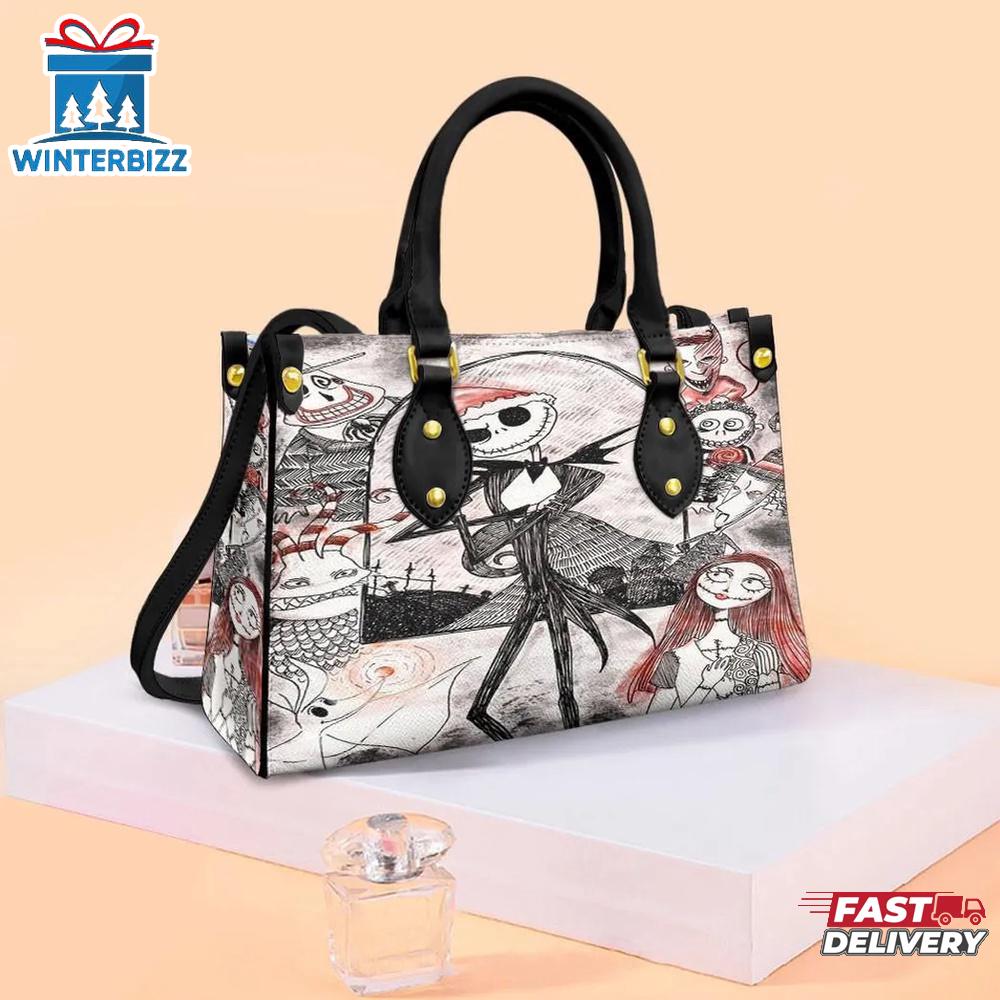 Photos Of Sweet Love Of Sally And Jack Skellington Cartoon Pattern Leather Handbag