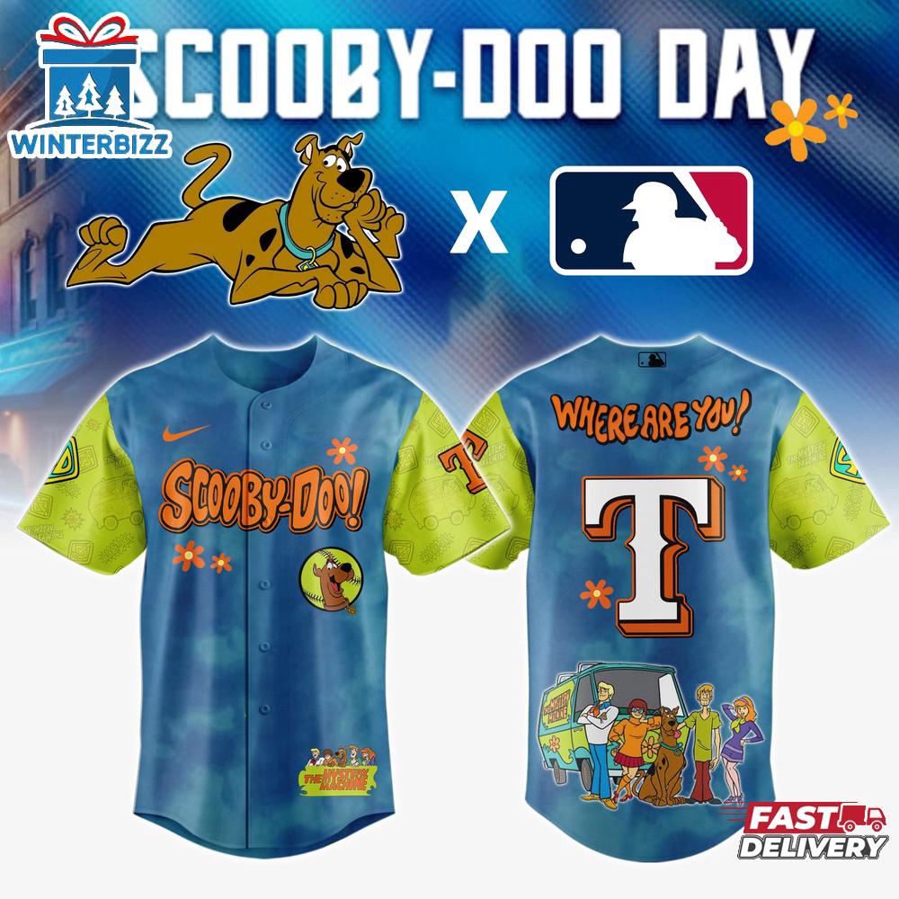 Photos Of Texas Rangers MLB x Scooby Doo Cartoon Baseball Jersey Shirt