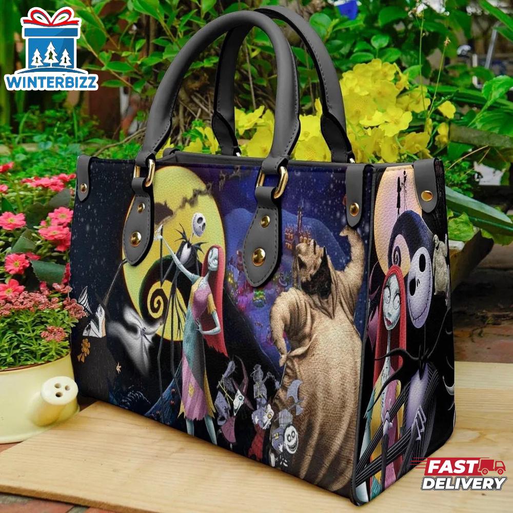 The Nightmare Before Christmas Pattern Leather Handbag This bag is a practical accessory for style-conscious individuals on the move and makes a wonderful gift for special occasions. Crafted with precision and attention to detail, it is made from high-quality PU leather and includes a soft microfiber layer to safeguard your belongings. The bag is designed with two zippered compartments, a flat pocket, and a detachable pocket, offering ideal organization for your essentials. Spacious enough to carry daily items like your phone, keys, and makeup, it can be carried by hand or worn over the shoulder with an adjustable strap, making it perfect for work, school, travel, and more.