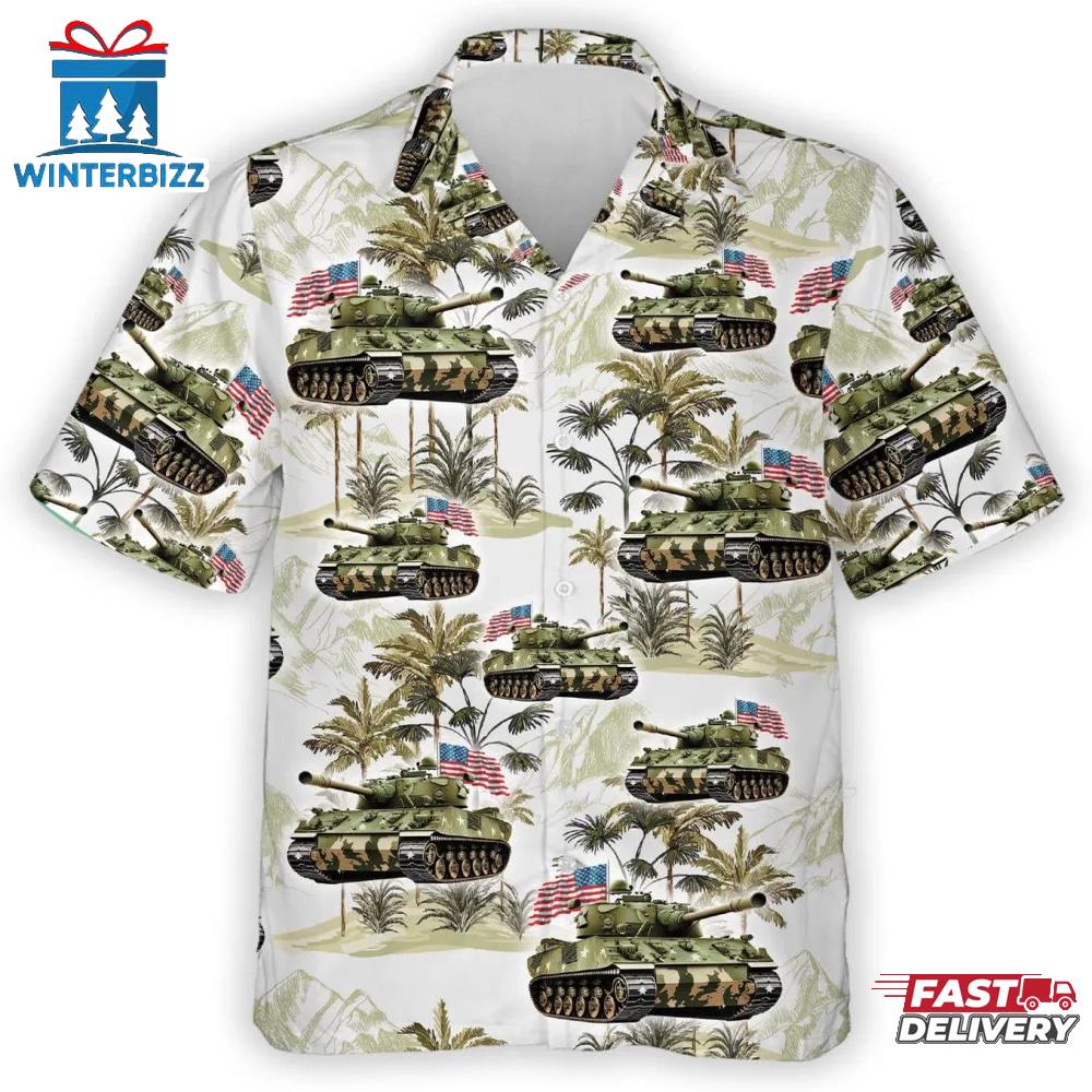 Us Army Tank Tropical Pattern Hawaiian Shirt Gift For Veteran