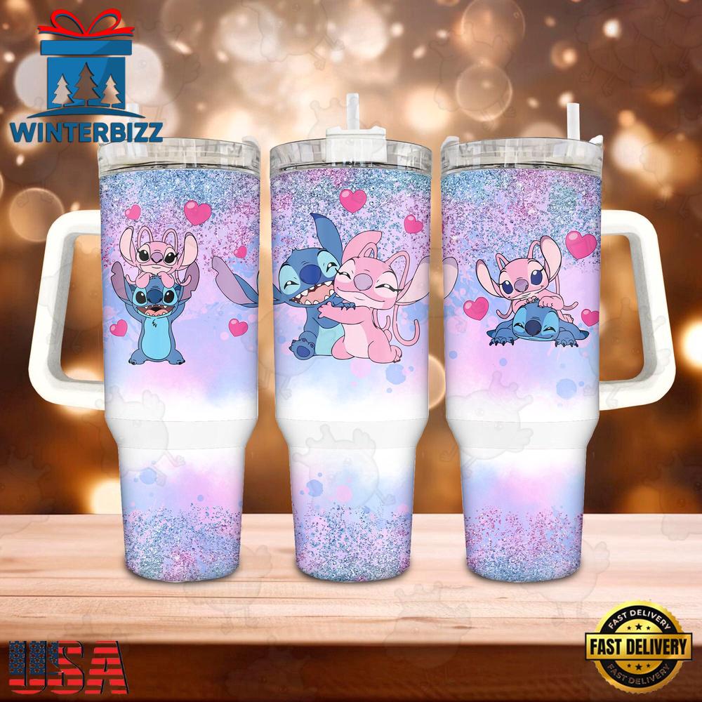 Valentine Stitch Disney Cartoon Pattern Stainless Steel Tumbler 40Oz With Handle , Valentine’s Gift For Lovers